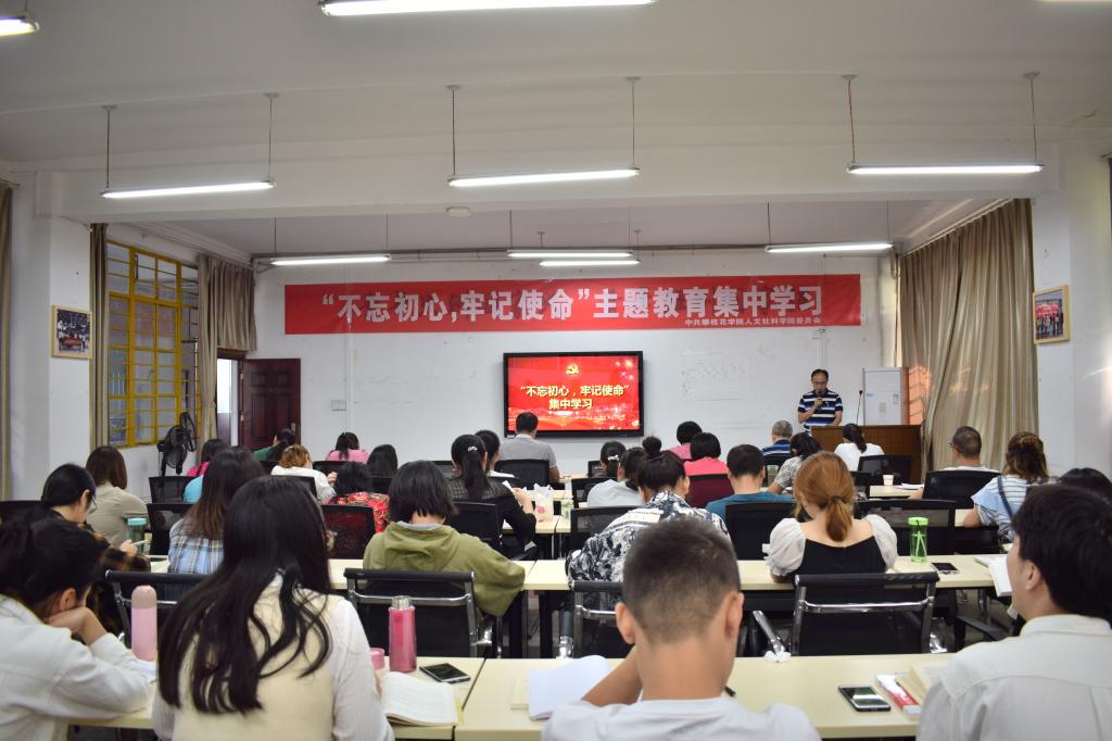 为了更好的贯彻落实“不忘初心,牢记使命”主题教育,积极响应学校要求,2019年10月13日上午,人文社科学院院于凌云楼三楼会议室组织开展了“不忘初心,牢记使命”主题教育集中学习会。人文社科学院党委书记薛荐戈,院长文忠波,副院长张琳、曹利华,人文社科学院教工支部成员及学生党支部成员参与了此次主题教育。